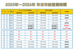 尚、2,026年1月1日(木)~1月4日(日)まで休みとさせていただきます。